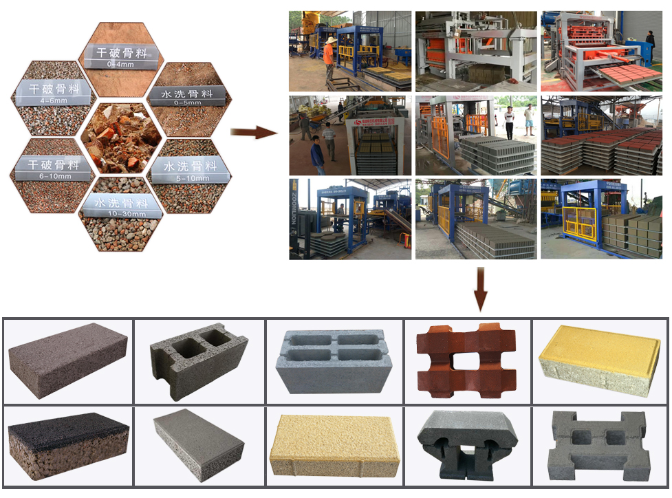 (4)可以生產(chǎn)的再生磚有隔墻磚、模塊磚、路面磚、透水磚、保溫磚、植草磚、聲屏障板等,種類多達(dá)100多個(gè),其各項(xiàng)性能指標(biāo)均已達(dá)到或超過(guò)國(guó)家相關(guān)標(biāo)準(zhǔn)。